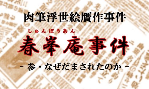 事件・論争 春峯庵事件(1)浮世絵贋作事件のあらまし現在でも日本国内で起きた贋作事件として一番最初に名前の挙がる「春峰庵事件(しゅんぽうあんじけん)」。浮世絵界の権威であった大学教授さえだまされた肉筆浮世絵贋作事件である。今回は当時の新聞報道や事件後の雑誌特集記事などから春峰庵事件についてまとめてみた。
